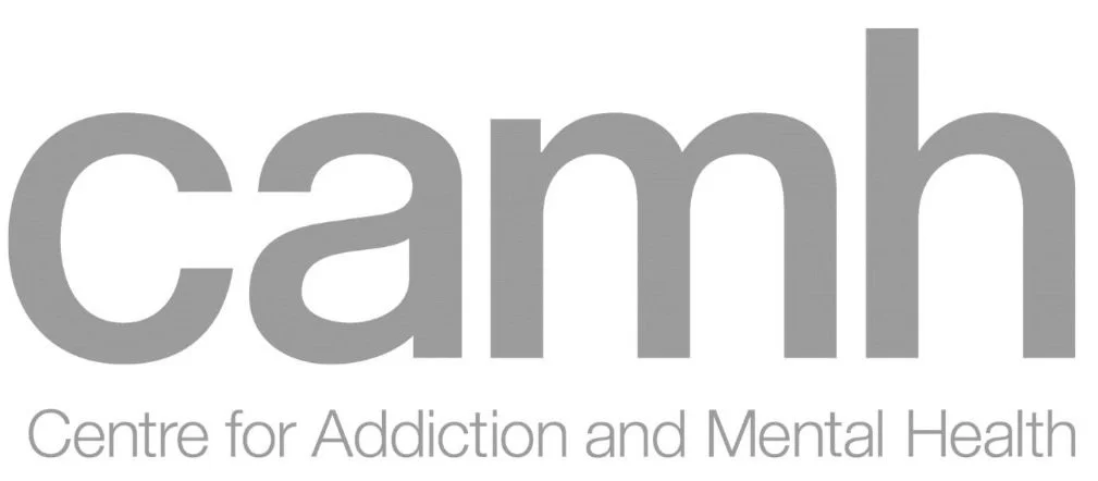 Logo for the Centre for Addiction and Mental Health with large gray text and smaller text underneath.